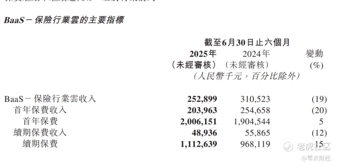 2023年上半年,保险行业云产生的收入为3.19亿元,2024年同期为3.10亿元,同比下滑3%,今年上半年进一步下滑至2.52亿元,同比下滑19%。不过,成交的保费上涨了9%,为31.18亿元。