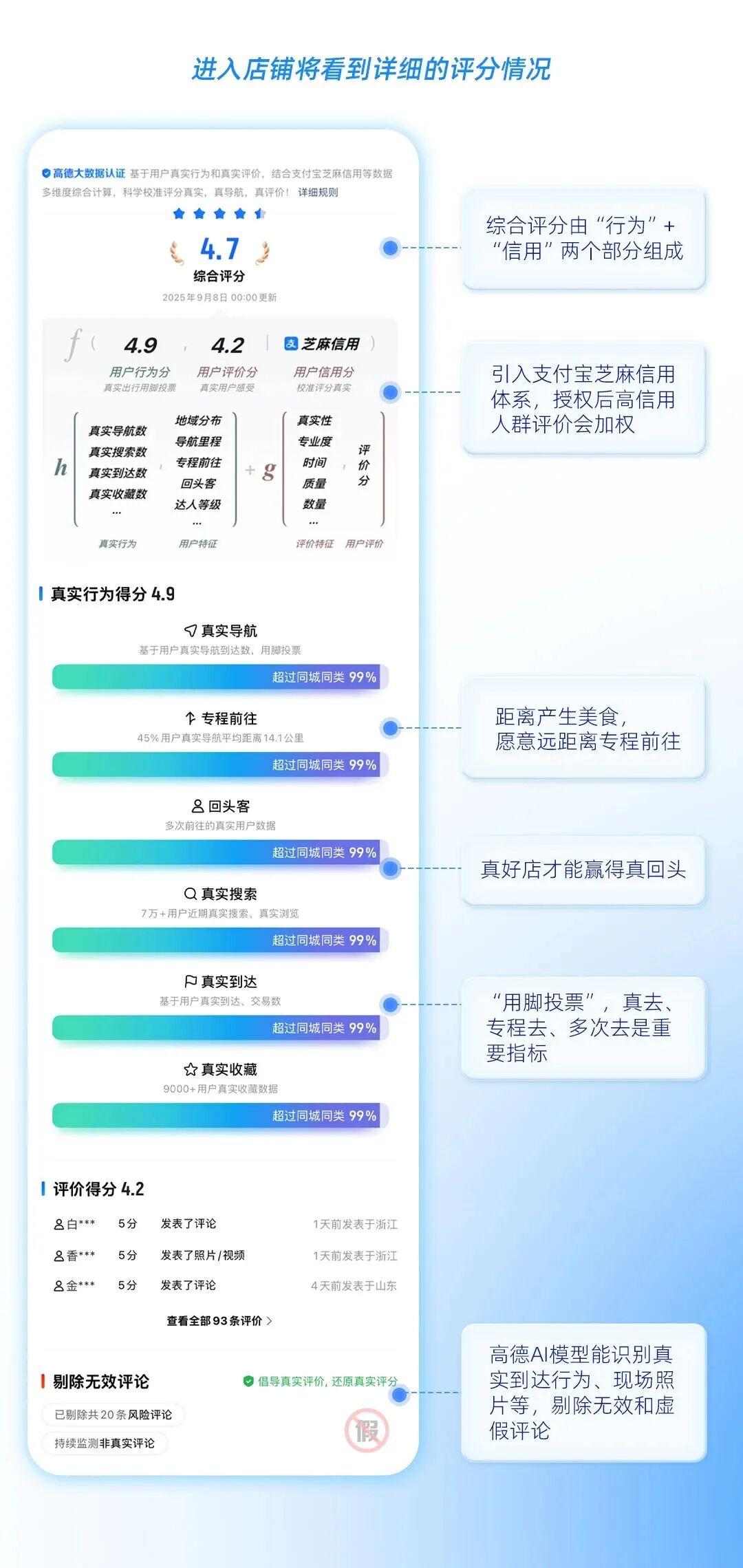 高德扫街榜的核心是通过用户的“行为+信用”,确保这是一份无法刷分的真实可信榜单,从而重新构建一套线下服务的信用体系。