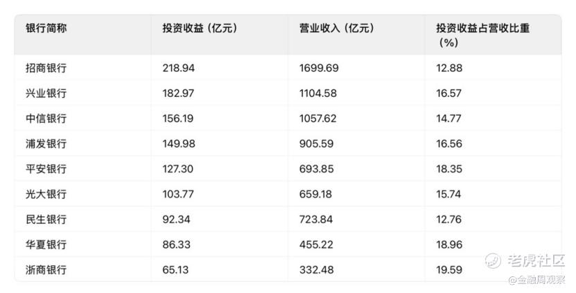 值得注意的是,小周抽取了包括招商、中信、华夏在内的9家A股上市的股份行作为对比样本,投资收益占营收比重方面: