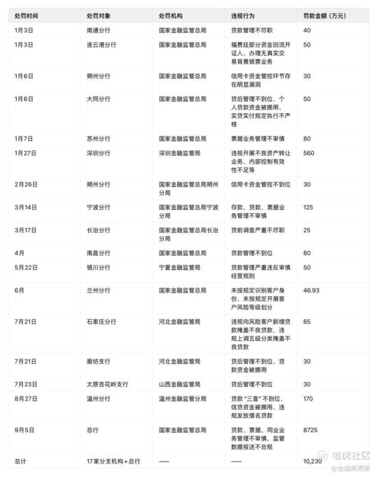 比如温州分行因信贷资金挪用、违规发放借名贷款被罚170万;太原杏花岭支行、廊坊支行因贷后管理不到位被处罚;石家庄分行就更离谱了,甚至出现“向风险客户新增贷款以掩盖不良”“违规调整五级分类”等严重问题。