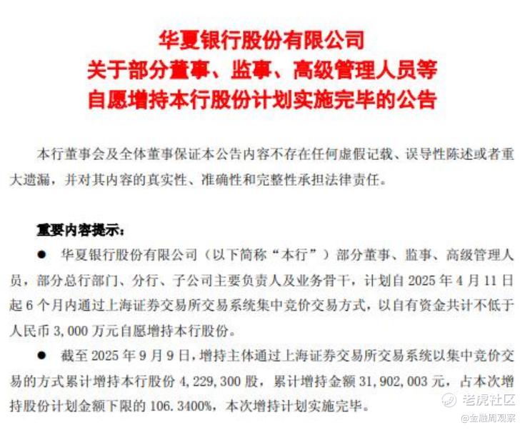 虽然增持总额与华夏银行千亿市值相比,只能算“蚊子腿”,但市场更看重的,是管理层释放信心的姿态。