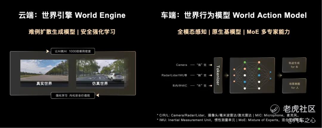 相较之下,**已经找到了新解法,在**乾昆 ADS 4 上,打造出 WEWA 世界模型架构,通过端云结合的系统训练,行为模型可以直接控制车辆,时延更低。