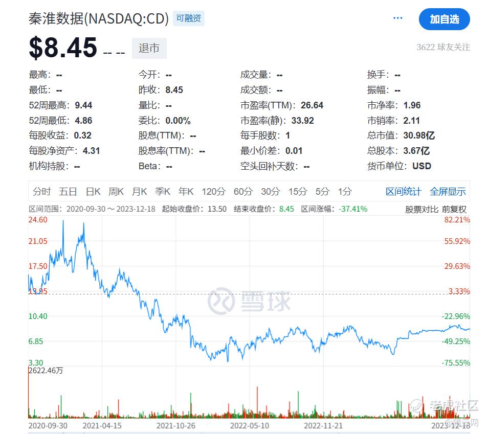 面对半路杀出的要约报价,贝恩投资表示不打算将其实际拥有的公司股份出售给任何第三方。最终,贝恩投资以8.60美元/ADS,31.6亿美元的估值完成对秦淮数据的私有化。