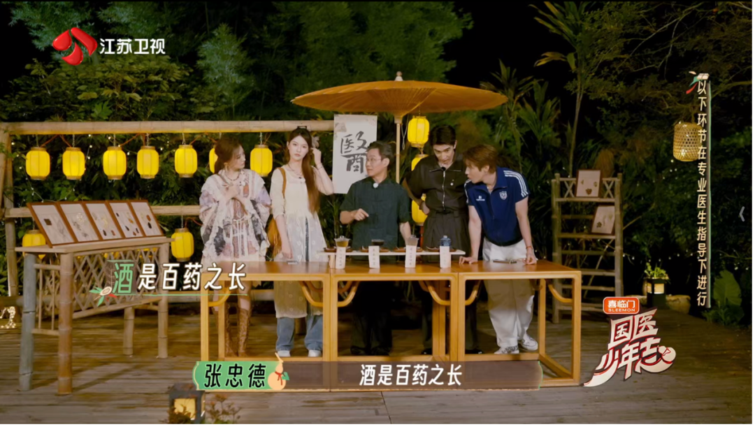 在江苏卫视和芒果TV联合推出的中医药文化传承综艺《国医少年志》中,广州中医药大学副校长、广东省中医院院长张忠德教授(人称“德叔”)深入浅出地讲解了酒的药用价值,并指导如何科学饮酒、合理利用药酒养生。