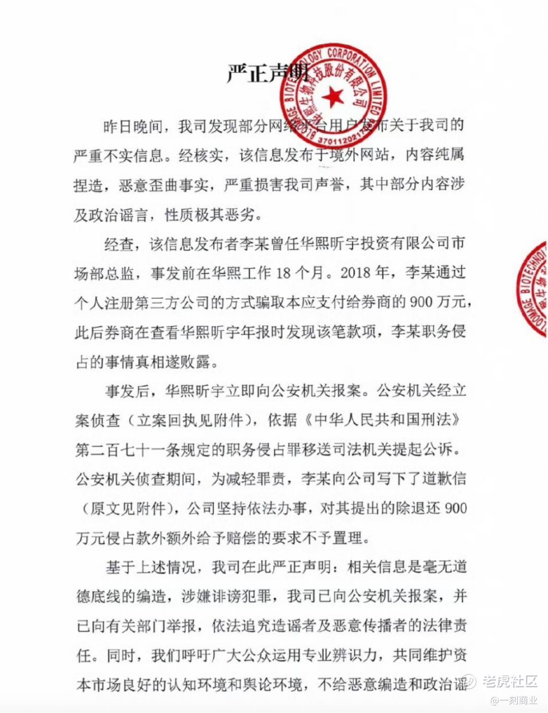 华熙生物官博回应李某指控事件,图/华熙生物微博