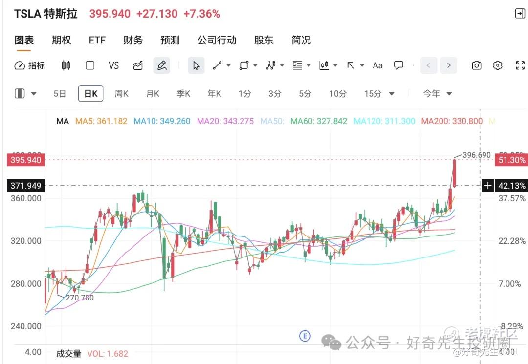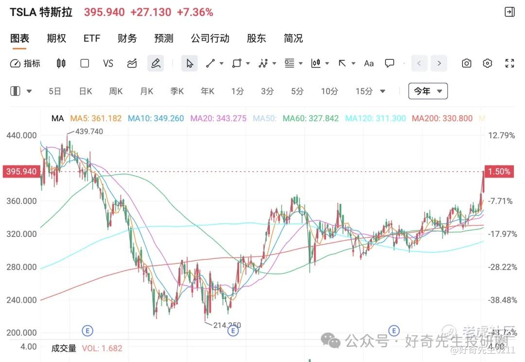 但从年初至今来看特斯拉也只是刚刚正收益,相较于其他巨头,英伟达30%、META28%来说,向上的空间还是有的。害怕踏空,可以先小仓位布局,先不要太过激进,马上10月中旬还有财报,不确定性还是存在的。