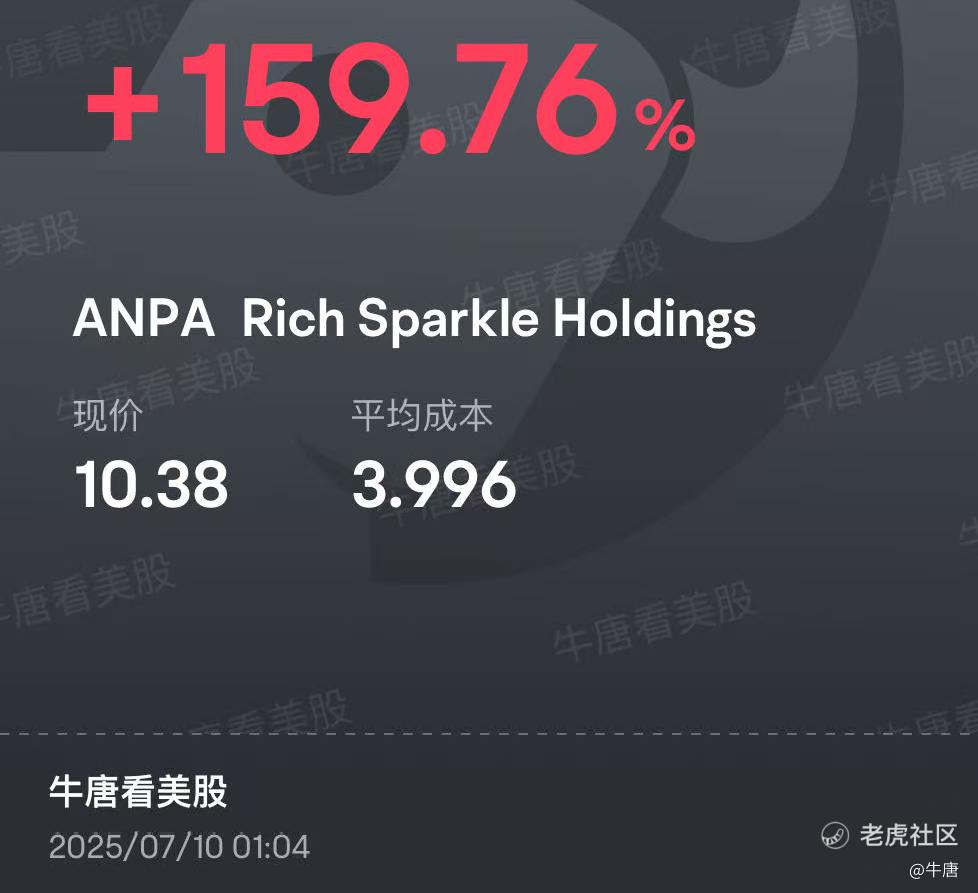 $Rich Sparkle Holdings Limited(ANPA)$ 又一个近160%的收益。 $阿里巴巴(BABA)$ $蔚来(NIO)$ $理想汽车(LI)$ $拼多多(PDD)$