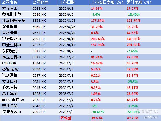 WIND数据显示,自7月以来,已有18家企业成功登陆港交所,其中14家于上市首日录得正收益,占比接近八成。统计显示,这批新上市企业的首日平均涨幅达39.63%,上市以来累计平均涨幅为49.13%,反映出港股市场对新股的积极认可和较高的资金参与热情。