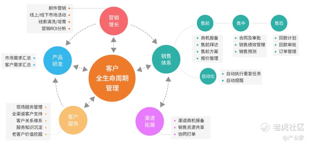 在实际落地中,这些能力可以分别加持CRM相关的不同角色,从销售到运营到产品甚至企业CXO。