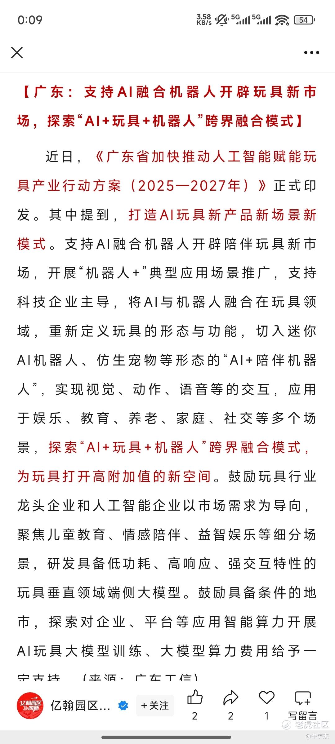 $涂鸦智能(TUYA)$ 广东要打造千亿AI玩具市场,玩具智能化是大势所趋,产业政策支持,涂鸦所处的位置红利挺大的。