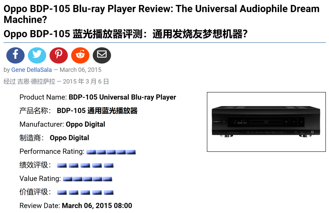 美国专业测评网站Audioholics为OPPO给出全满分评价