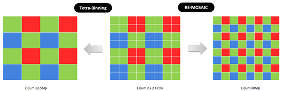 所谓四合一,是将图像传感器相邻四个像素合并为一个“大像素”,在低光环境下显著增加吸光量、提高信噪比;在光线充足时,像素又可独立工作。