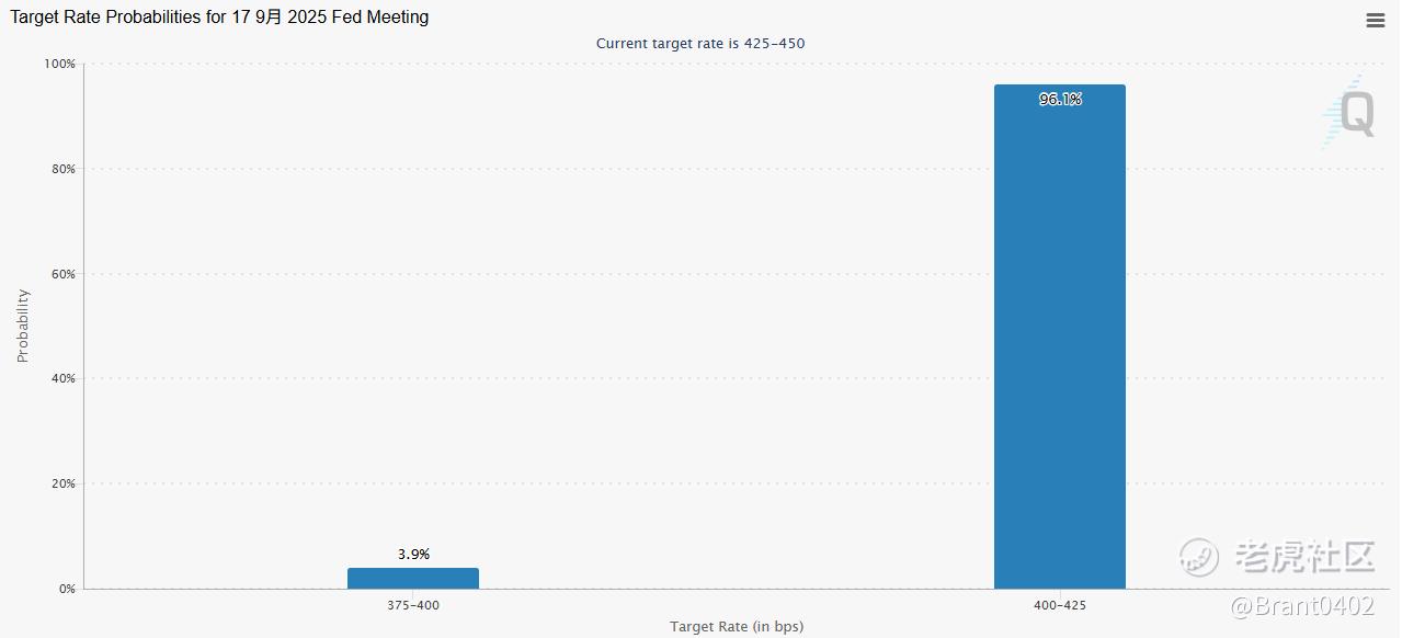降息25bp:概率为96.1%,几乎板上钉钉。若落地,将使联邦基金利率降至4.00%—4.25%。