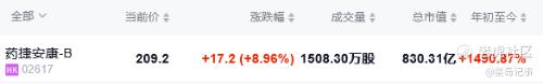 9月17日,是创新药18A企业药捷安康登陆港股的第87天。截至当天收盘,该公司股价变动终于回归至正常范围,报209.2港元/股,涨幅8.96%,总市值830.31亿港元。