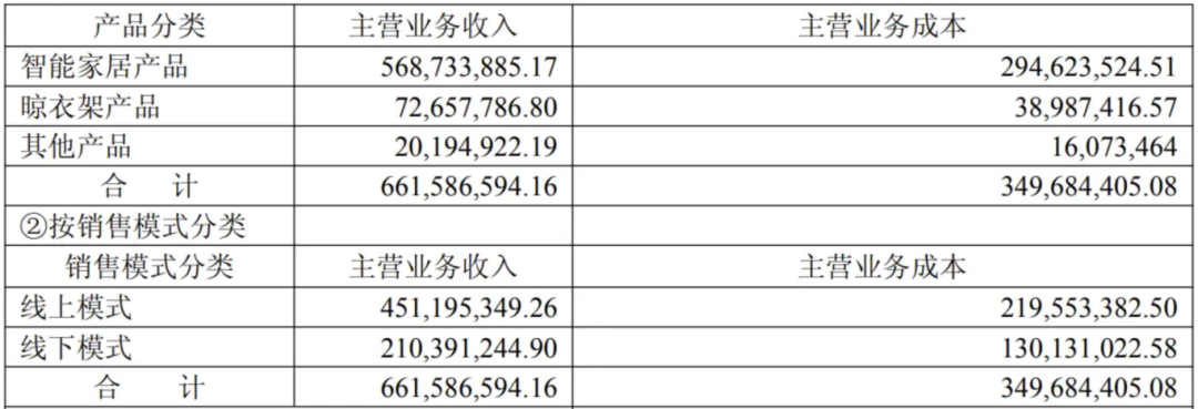 按照产品分类来看,好太太智能家居产品贡献了5.69亿元营收、晾衣架产品贡献0.73亿元,智能化已经成为了好太太竞争核心。