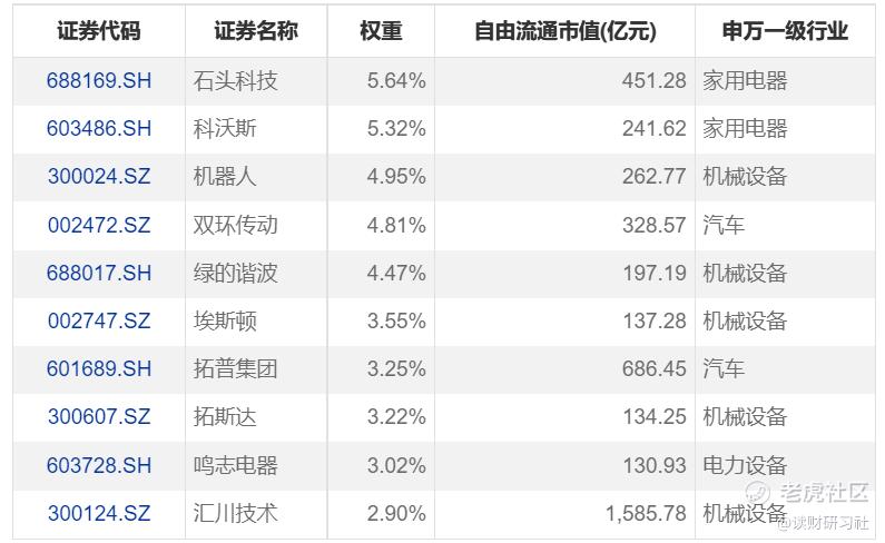 该指数前十大成份股覆盖了人形机器人产业链的核心环节,包括精密制造、核心部件、整机制造等领域,权重集中且质地优良。