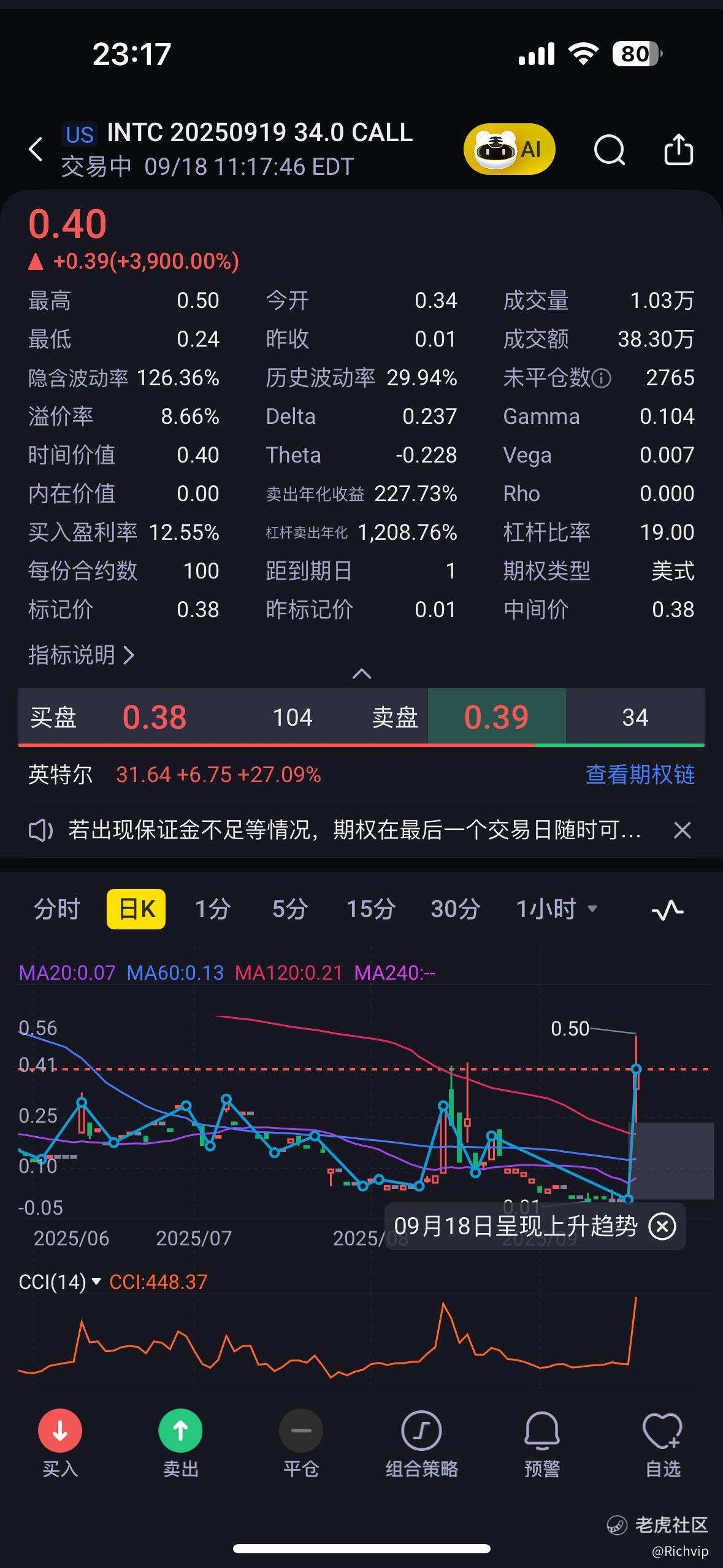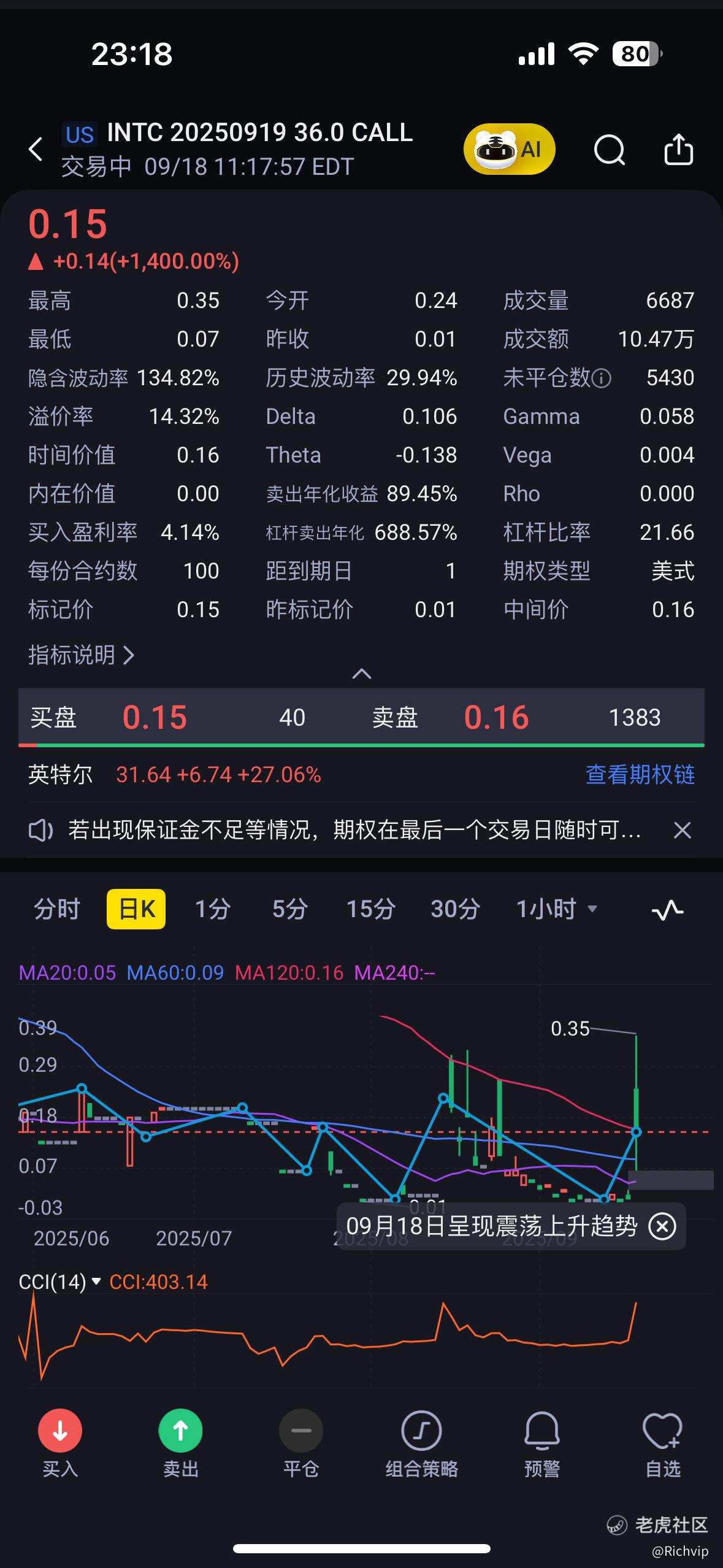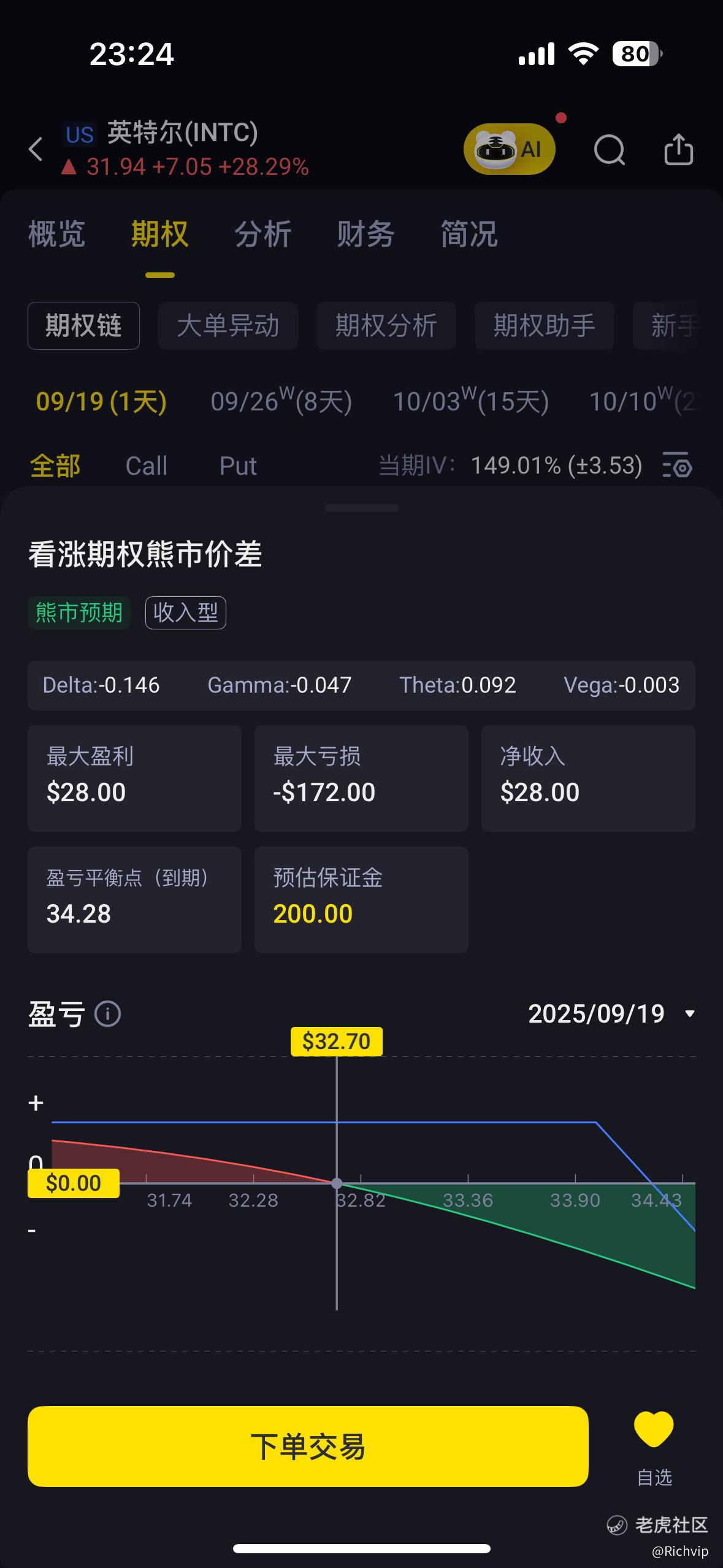 $英特尔 VERTICAL 250919 CALL 36.0/CALL 34.0$ 英伟达50亿入股,如何用期权做空英特尔