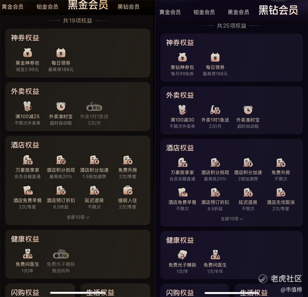 "满百大额券"8月1日上线,黑钻会员可享受满100减30的优惠、黑金满100减25、铂金满100减25,且不限次领取,这不仅是优惠力度的提升,更是在提高客单价,优化订单结构;"准时宝"针对黑钻、黑金、铂金会员,将起赔时间缩短到10分钟,赔付金额提高到4-6元,并且实现了“无需领取、超时自动赔付”;外卖1对1急送,在9.10日起全域上线,黑钻会员可享受每月2次的“1对1急送”,专属骑手直达配送。