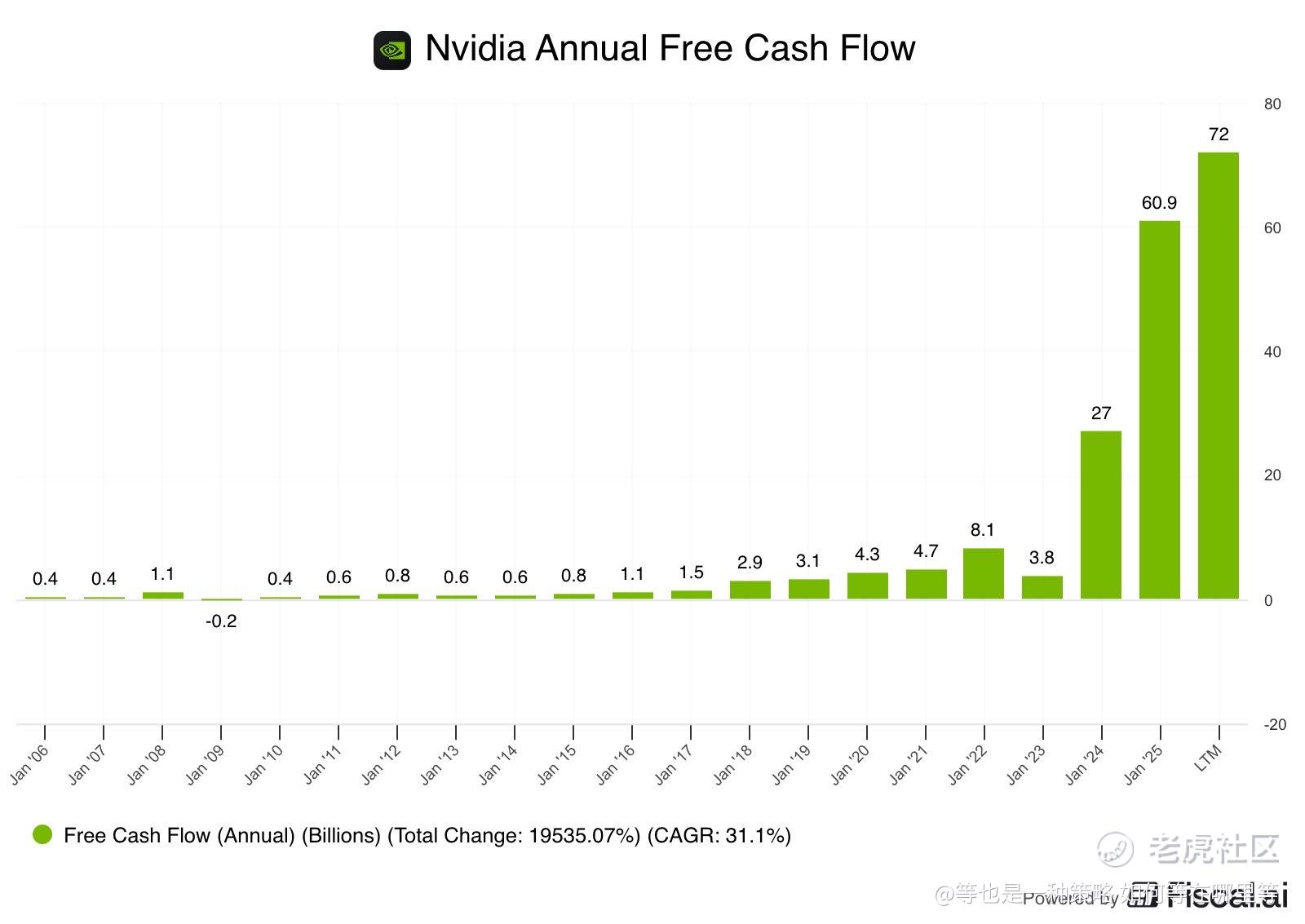 Nvidia $NVDA在过去四个季度带来了 720 亿美元的自由现金流,高于 2020 年的 43 亿美元
