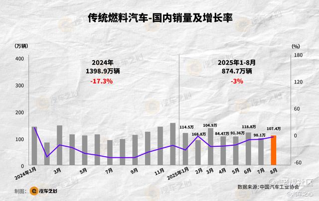 今年 1-8 月,燃油乘用车国内销量达到 714 万辆,其中 6 月、7 月、8 月燃油乘用车销量连续同比增长 9.7%、9.5% 和 13.5%。