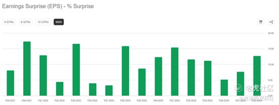其次,营收表现与此类似——过去15个季度中,天弘科技营收持续超出市场预期。