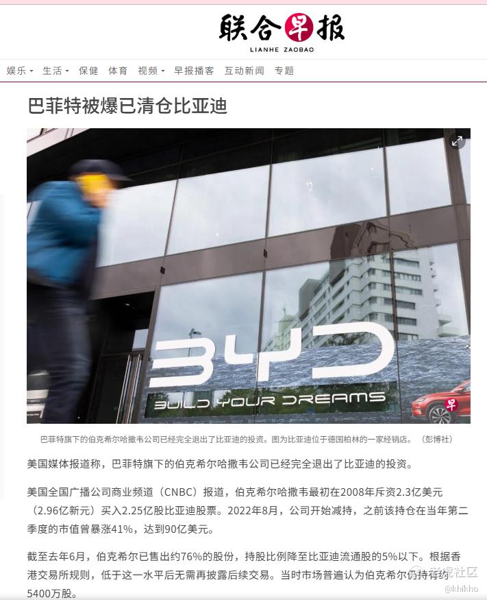 伯克希尔哈撒韦最初在2008年斥资2.3亿美元(2.96亿新元)买入2.25亿股比亚迪股票, 那时候多少人跟随股神的脚步,进场投资了 $比亚迪ADR(BYDDY)$ 。在2009年股东大会上,芒格称,比亚迪和创始人王传福是“了不起的奇迹”。在伯克希尔持有期间,比亚迪股价累计上涨约3890%。那时候的比亚迪,风光无限好,尤其考虑到这笔投资曾是芒格亲自推动、并带来近 3890% 的惊人回报。谁人不称赞一声,比亚迪是一家好公司 👍