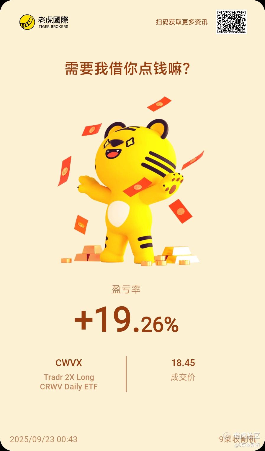 $Tradr 2X Long CRWV Daily ETF(CWVX)$ 卖飞了[捂脸] [捂脸] 之前下了长期订单,忘记取消