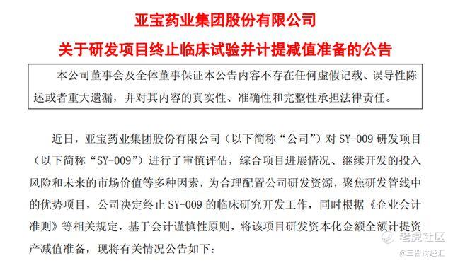 SY-009项目的终止不仅是亚宝药业新药研发的一次遇挫,也将带来明显的财务影响。