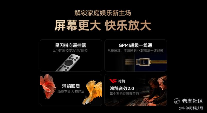 此外,星闪电视2.0搭载鸿鹄音画技术,可以智能优化对比度、色彩与细节,呈现鲜活真实的画面;配合鸿鹄音效2.0,增强人声对白与虚拟环绕声,打造立体沉浸的视听体验,全面升级家庭场景下的交互与娱乐品质。