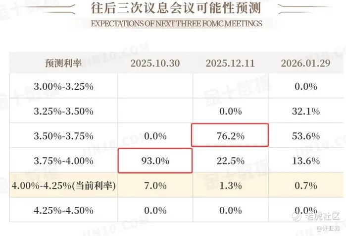 据CME“美联储观察”:美联储10月维持利率不变的概率为7%,降息25个基点的概率为93%。美联储12月维持利率不变概率为1.3%,累计降息25个基点的概率为22.5%,累计降息50个基点的概率为76.2%。