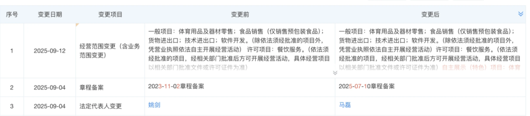 虽然始祖鸟在大中华区销售极好,但这都是前任领导的功劳。2025年9月4日,始祖鸟关联公司亚玛芬体育用品贸易(上海)有限公司完成了高层的变更,姚剑退出,马磊接任法人和董事长。