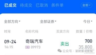 1、奇瑞汽车 $奇瑞汽车(09973)$ 高开低走再拉升