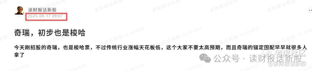 但市场担忧会撞车或者像奥克斯一样可能会破发时,财哥在打新星球和公号上多次提示:奇瑞是梭哈票,要梭哈打!