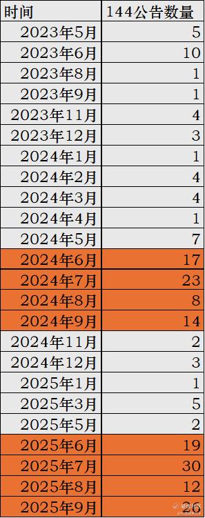 经SEC网站查询后,你会明显发现,进入9月后,144减持公告的数量明显增多,达到了26份,远高于8月的12份和6月的19份,逼近7月的30份: