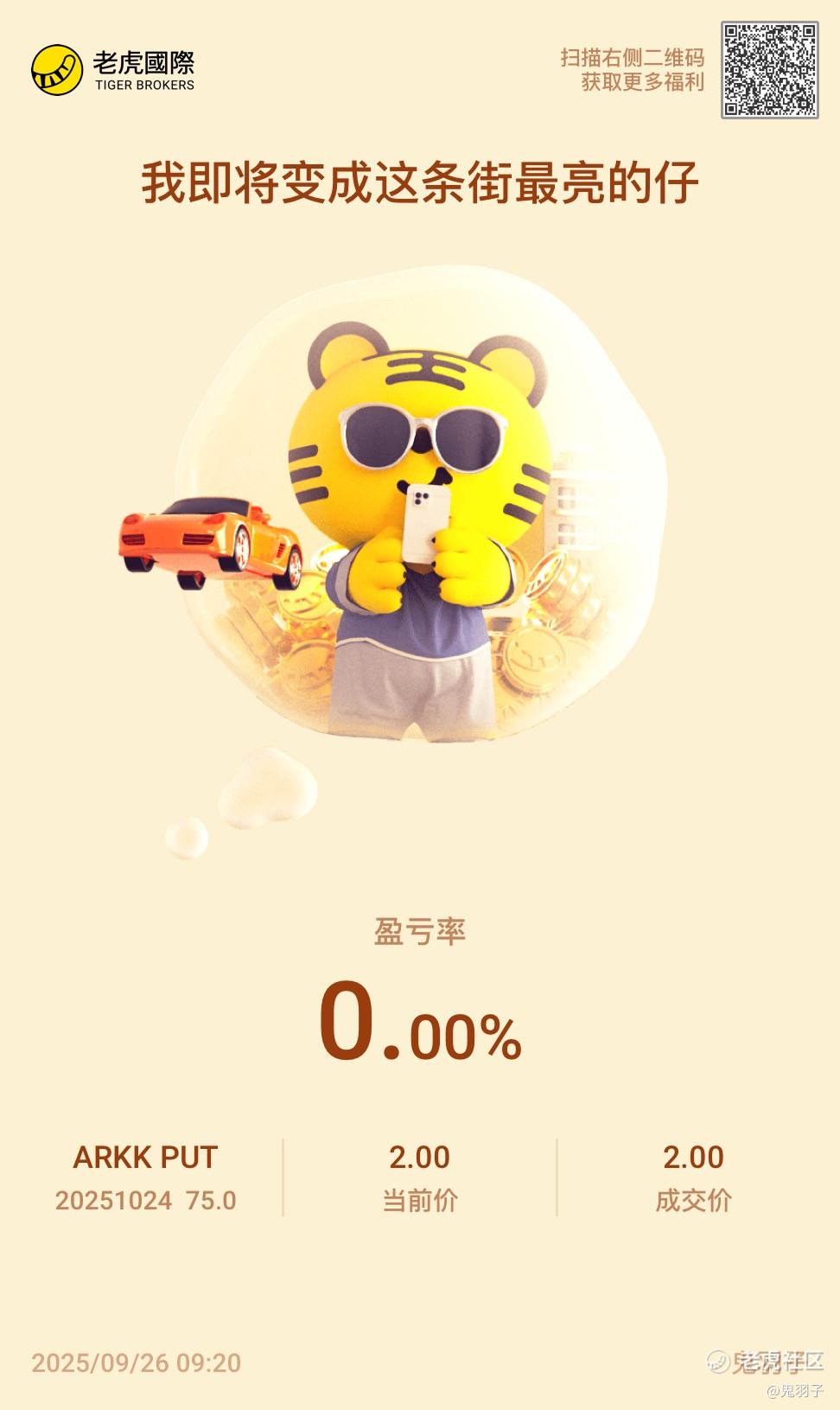 $ARKK 20251024 75.0 PUT$ 触发了交易门限自动sp了,虽然依然看好木头姐基金在今年的表现,但是这个点位并不能说太好。可能股价下探到75左右的时候还要roll一次,届时再同步买入leaps call