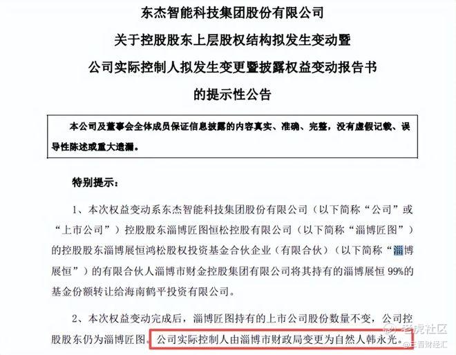 8月26日,东杰智能公告,公司实控人由淄博市财政局变更为自然人韩永光,这一变更仅发生在合作公告发布前一个月。