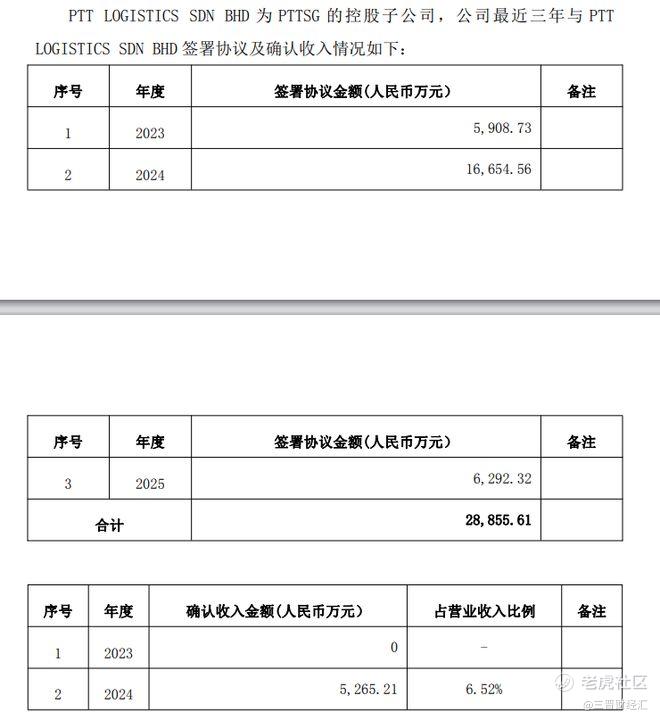 值得关注的是,东杰智能与PTTSG旗下子公司早有合作基础。2023-2025年间,双方签署协议金额达2.89亿元,但2024年实际确认收入仅为5265.21万元,占同期营收的6.52%。