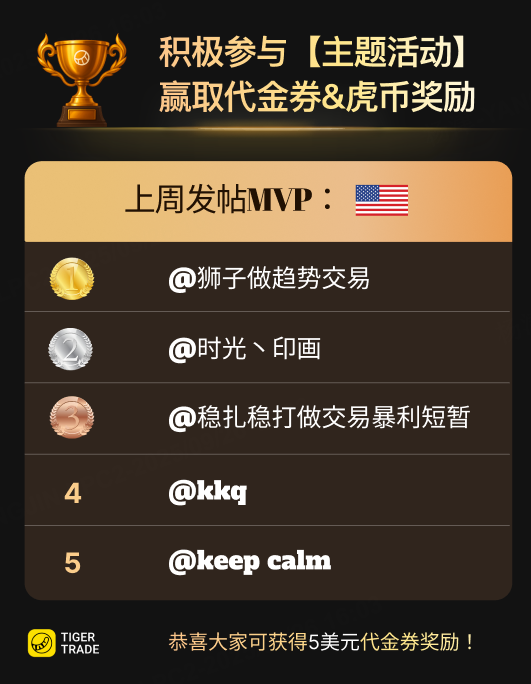 恭喜以下5位小虎,成为上周主题发帖积极&精彩用户,可获5美元代金券奖励![梭哈]