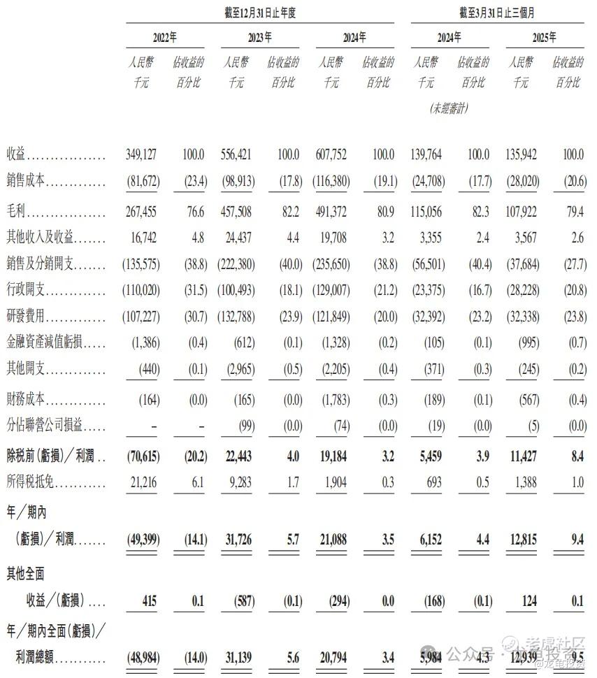 营收:2022-2024年营收分别为3.49亿元,5.56亿元,6.07亿元,年复合增长率为31.9%;2025年前三个月营收1.36亿,较2024年前三个月1.40亿营收下降2.8%。