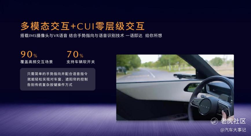 在智能交互领域,EZ-60“所指即所控”的多模态交互,让用户只需指向遮阳帘、车窗等部件,说出相应指令,即可实现精准控制;一语即达的CUI零层级交互覆盖90%高频场景,用户只需说出指令,车机便能迅速响应;车外配备4颗独立麦克风和声纹识别技术,在地库等嘈杂环境下,指令识别率超95%。
