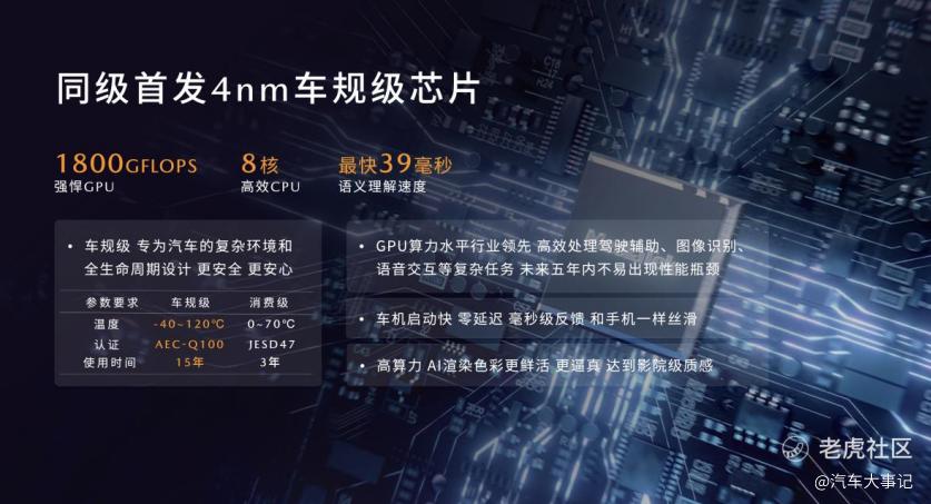 在智能化领域,EZ-60搭载同级首发4nm车规级芯片,8核CPU,语音指令响应时间仅为39毫秒,复杂对话准确率提升55%。多重冗余校验机制,确保在复杂行车场景下,车机系统始终稳定、安全运行。