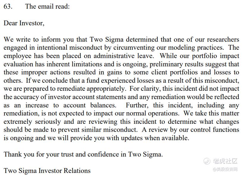 之后就有美国媒体向Two Sigma公司求证,公司虽未正面回应,但却触发了内部调查。