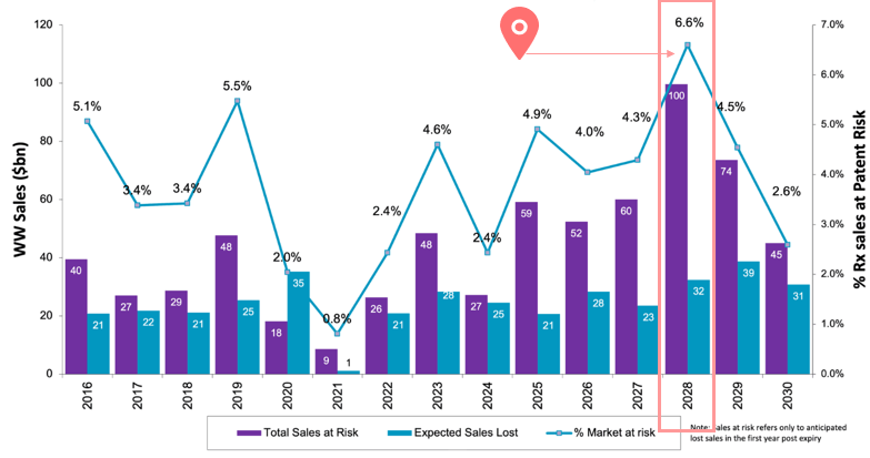 如今全球制药巨头正面临十年来最严峻的专利悬崖危机。据研究机构Evaluate数据,2027-2028年将有价值超1600亿美元年收入的药物专利到期,这一规模创下历史新高。