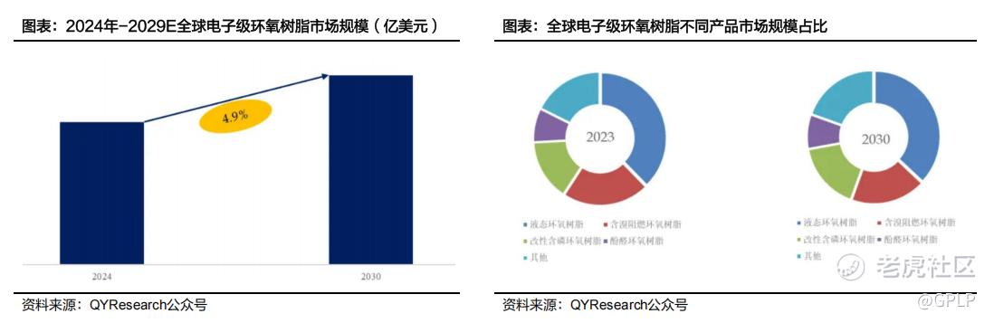以电子级环氧树脂为例,未来需求将快速增长。据QYResearch公众号,2024年全球电子级环氧树脂市场规模约24亿美元,预计到2030年将增长至32.2亿美元,2024-2030年CAGR达4.9%。