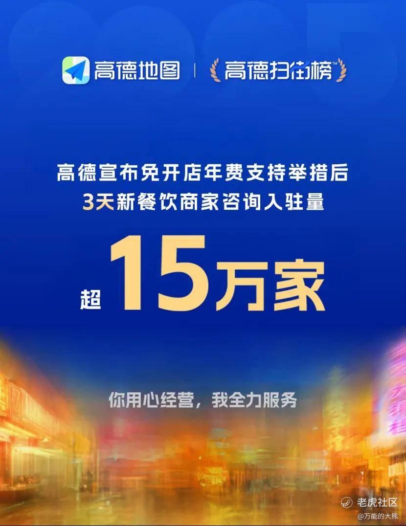 9月23日高德正式宣布对全国餐饮商家免收首年开店费,并提供配套扶持政策,引发了线下餐饮商家集中入驻的热潮,官宣三天就涌入十五万家商户的咨询,一场本地生活服务的流量革命正在悄然展开。