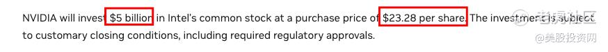 英伟达以每股23.28美元的价格买入英特尔约4%的股份,成为其重要股东。