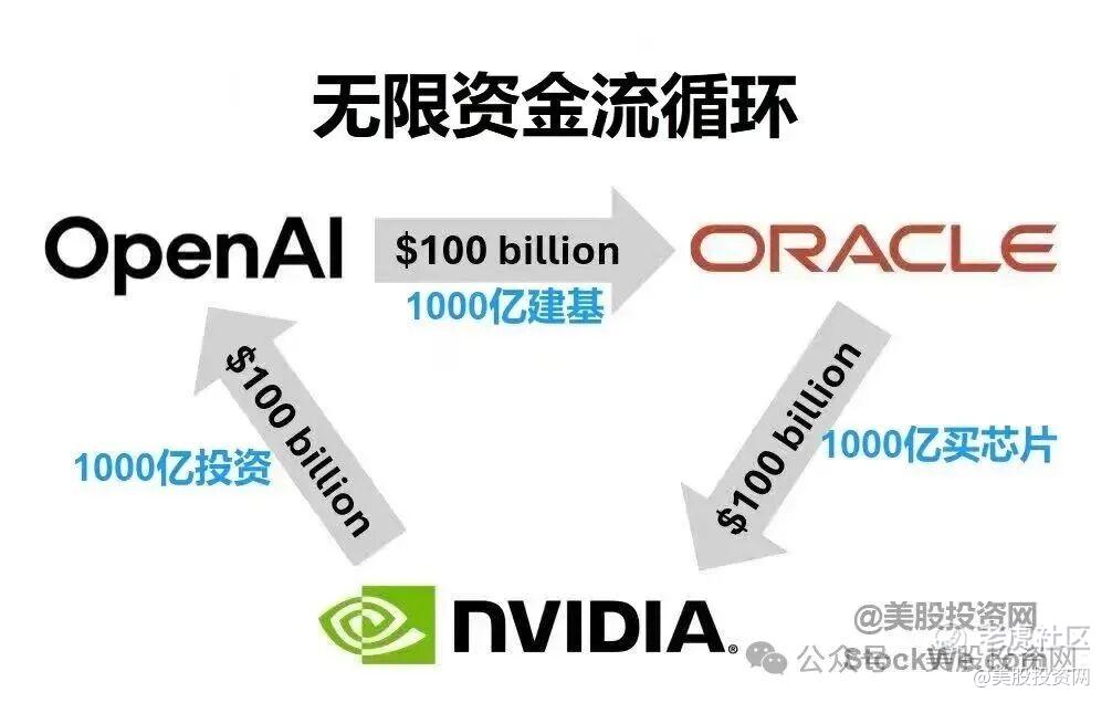 甲骨文为了满足OpenAI对算力的庞大需求必须向英伟达采购大量的GPU芯片。这笔钱,将从OpenAI流向甲骨文,再从甲骨文流向英伟达。最后,英伟达将部分利润返还给OpenAI。