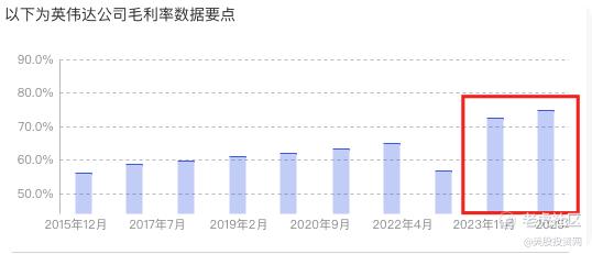 2023到2024年,AI训练需求爆发,H100、H200供不应求,英伟达的营收和利润暴涨,毛利率一度超过75%,市值突破3万亿美元,成为全球最有价值的科技公司。