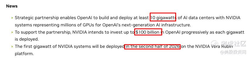 9月, $英伟达(NVDA)$ 宣布将向OpenAI投资1000亿美元,并签署部署至少10GW算力的意向书。