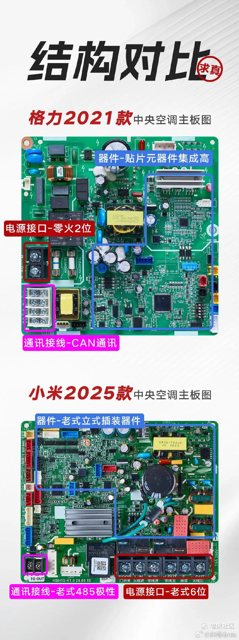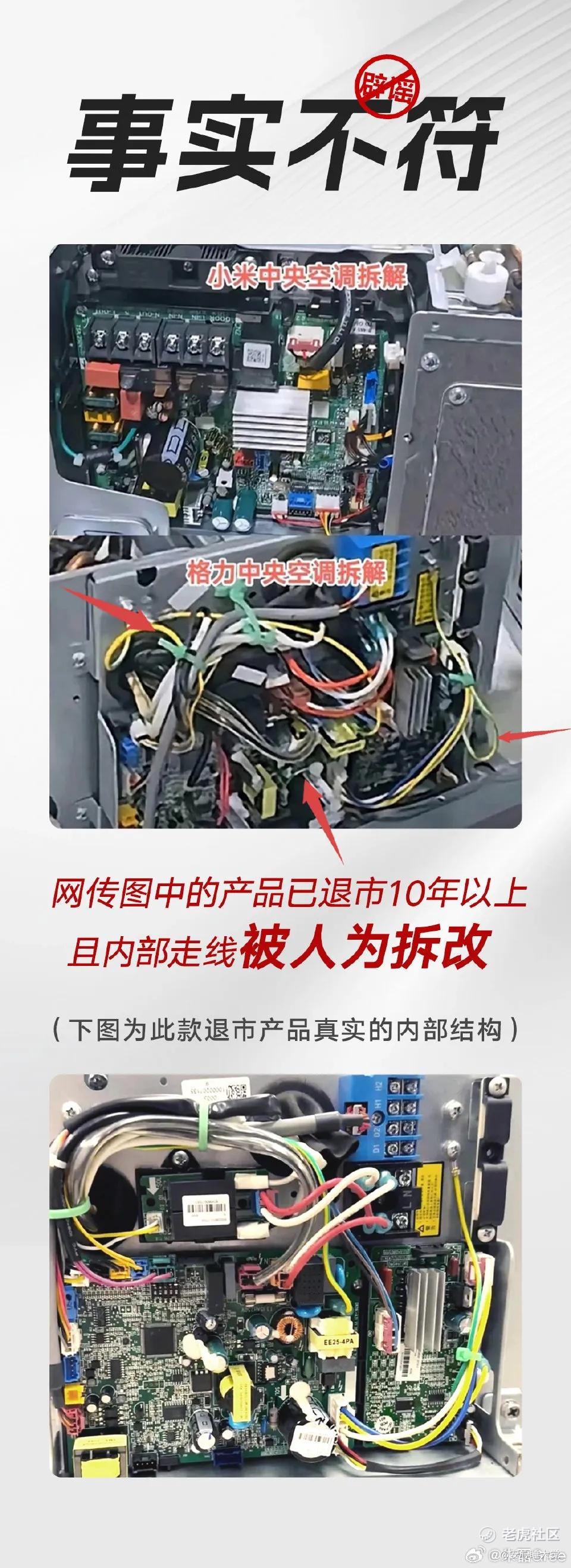 实际上呢,朱磊表示:“在卢总的微博里,我们又看到了他转发的一张对比图展示所谓“小米中央空调”和“格力中央空调”的主板结构。这是一张拉踩明显且经恶意处理的图片,却被广泛传播,刻意引导“格力做工粗糙”的印象。